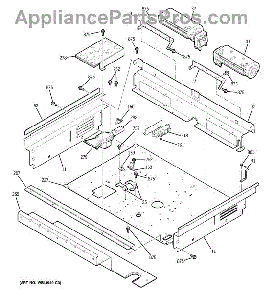 This tangential blower moves cooling air through the appliance to protect internal components and the control area from excess heat. Replace a noisy or non-running fan to restore proper airflow and safe operating temperatures. What it does
