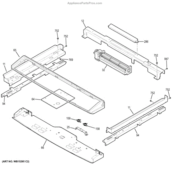 The Blower Assembly is an OEM component specifically designed for GE electric ranges. Located within the oven compartment, this assembly incorporates the convection fan motor to circulate heated air throughout the cavity during baking and roasting.