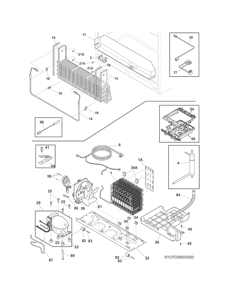 Evaporator coil assembly for bottom-mount refrigerators. Installs in the freezer compartment. Replace if damaged, leaking, or insulation is deteriorated.