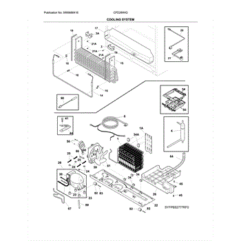 Secures the evaporator or condenser fan shroud to the refrigerator cabinet. Replace this mounting screw if stripped, missing, or broken during repair.
