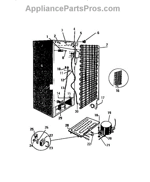 This is a compressor used in several types of home appliances. The compressor is designed to take cold gas in the appliance and place it under pressure so the gas raises in temperature. It is then moved through the refrigerator system to ensure the unit stays cold throughout the appliance. This part can become damaged or malfunction, which may cause the motor to stop running, make the motor noisier, or cause the motor to never stop running.If this happens, the compressor will need to be replaced. A basic set of tools will be needed. A pair of work gloves can also be useful. First, locate the compressor as it may be in various locations depending on the appliance model. Unplug the appliance before removing the compressor. Install the new compressor using the original bolts and nuts before turning the power back on and resuming normal use.This part is sold on an individual basis. The compressor is made to be used with refrigerators, ranges, stoves, ovens, air conditioners, and freezers created by Gibson, Frigidaire, Kelvinator, Montgomery Wards, Westinghouse, Tappan, JCPenney, Universal, and Kenmore. It is an authentic OEM replacement part directly sourced from the manufacturer.