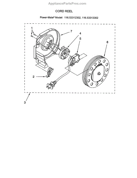 Parts for Kenmore 116.23313302 (11623313302, 116 23313302): Cord Reel Parts