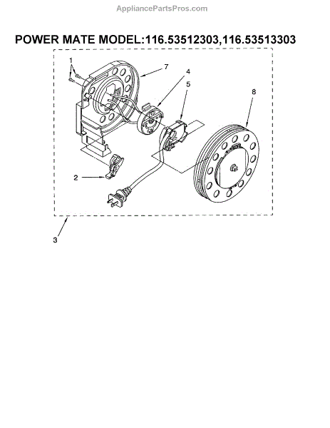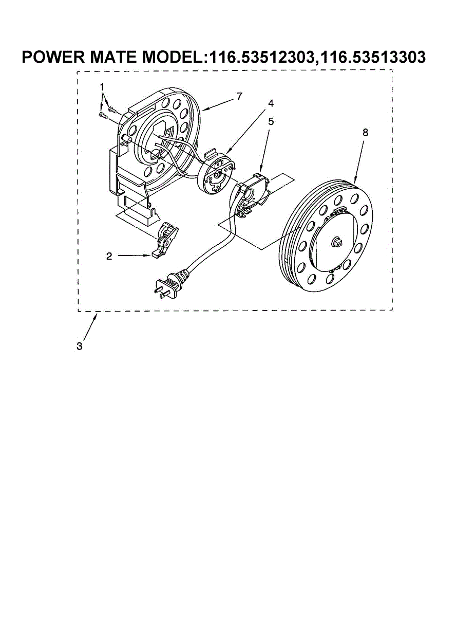 Parts for Kenmore 116.23512303 (11623512303, 116 23512303): Cord Reel Parts