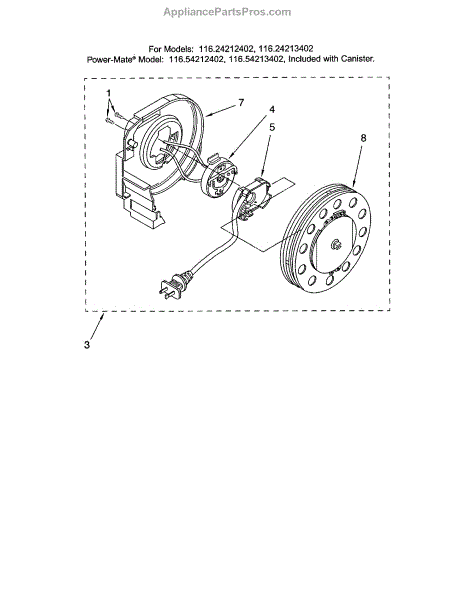 Parts for Kenmore 116.24212402 (11624212402, 116 24212402): Cord Reel Parts