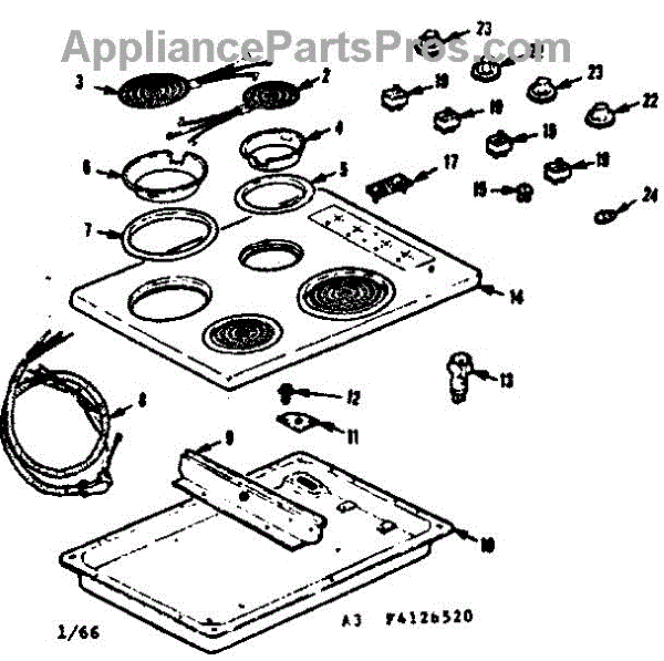 Parts for Kenmore 103.4136580 (1034136580, 103 4136580): Counter Top And Element Section Parts