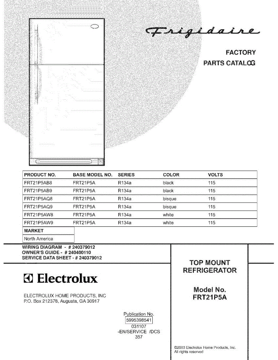 Parts for Frigidaire FRT21P5AQ8: 01 - Cover Parts