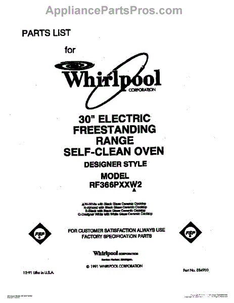 Parts for Whirlpool RF366PXXQ2: 01 - Cover Parts
