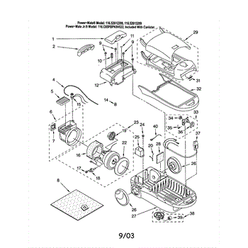 Parts for Kenmore 116.22613209 (11622613209, 116 22613209): Cover / Base / Motor, Fan Parts