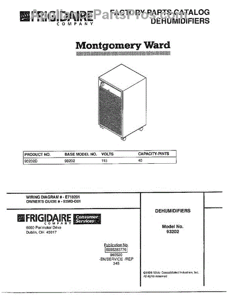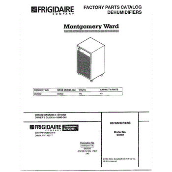 Parts for Frigidaire 93202D: Cover Page Dehumidifiers Parts