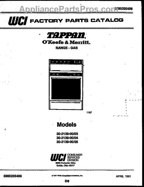Parts for Frigidaire 30-2139-00-05: Cover Page Parts