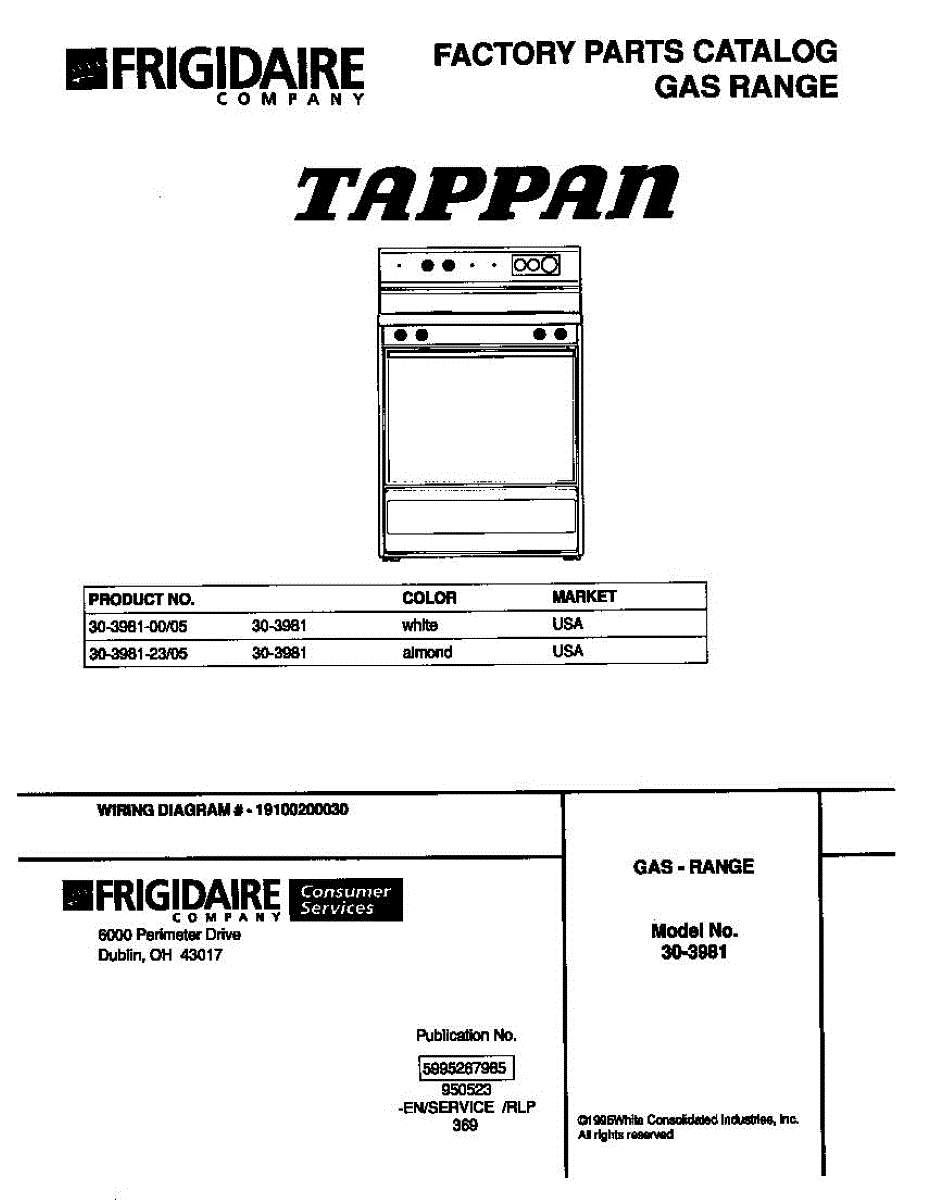 Parts for Frigidaire 30-3981-00-05: 01 - Cover Parts