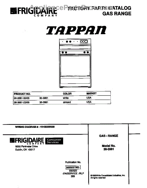 Parts for Frigidaire 30-3981-23-05: 01 - Cover Parts