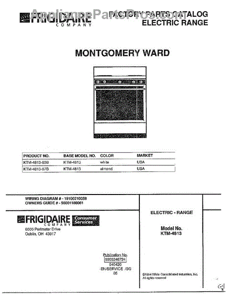 Parts for Frigidaire 4813-80B: Cover Page Parts