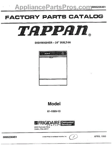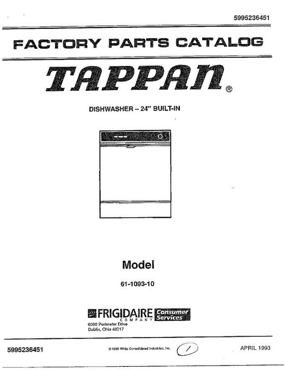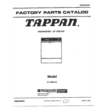 Parts for Frigidaire 61-1093-10: Cover Page Parts