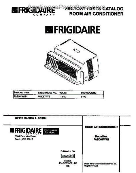 Parts for Frigidaire FAB067W7B1: 01 - Cover Parts