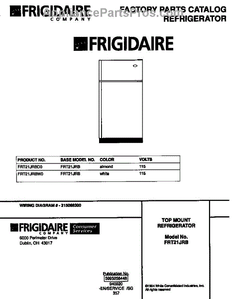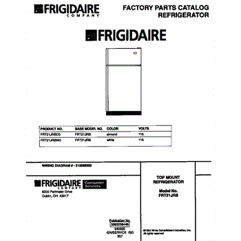 Parts for Frigidaire FRT21JRBW0: 01 - Cover Parts