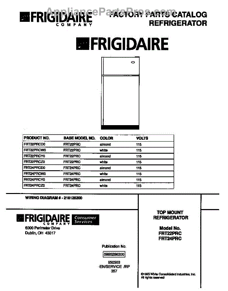Parts for Frigidaire FRT24PRCW0: 01 - Cover Parts