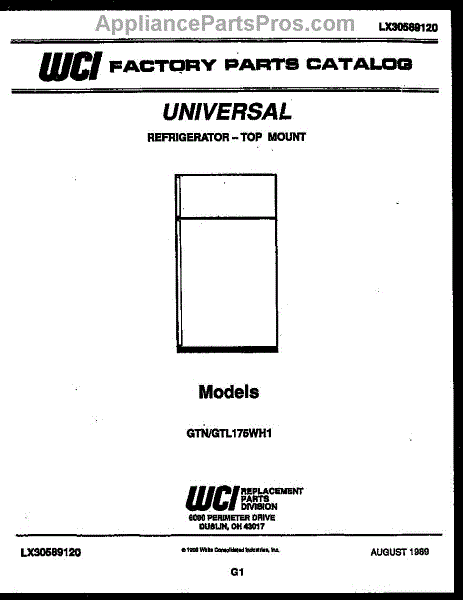 Parts for Frigidaire GTL175AH1: 01 - Cover Parts
