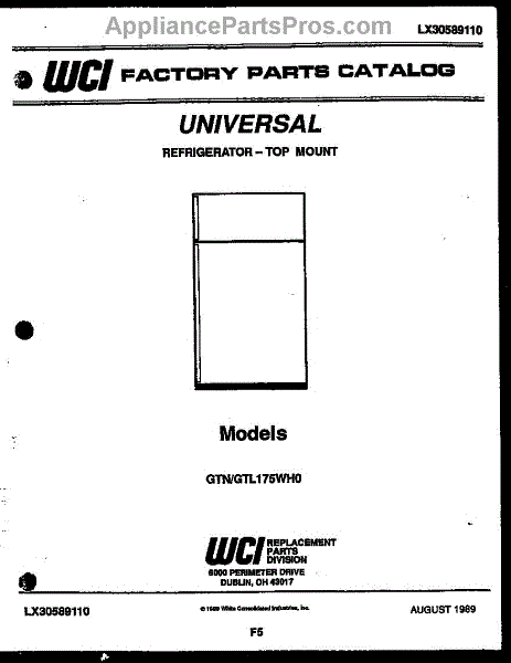 Parts for Frigidaire GTN175AH0: 01 - Cover Parts