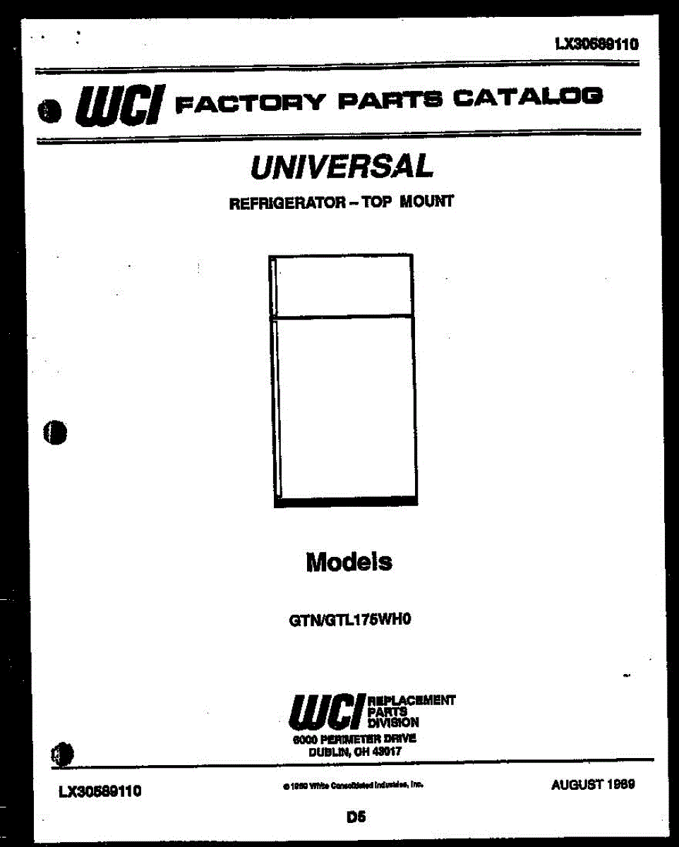 Parts for Frigidaire GTN175HH0: 01 - Cover Parts