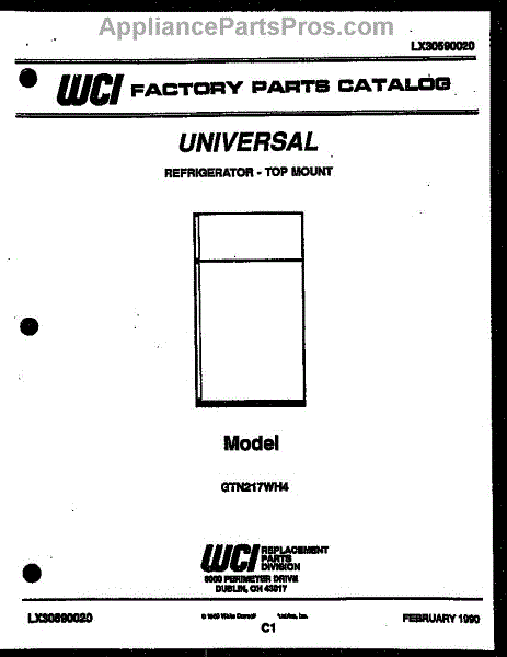 Parts for Frigidaire GTN217BH4: 01 - Cover Parts