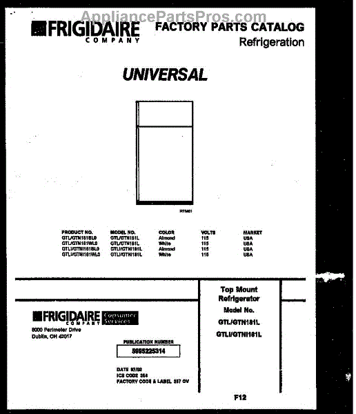 Parts for Frigidaire GTNI181BL0: 01 - Cover Parts