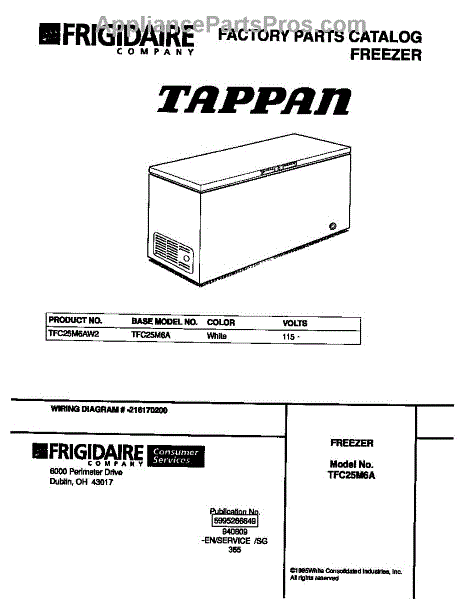 Parts for Frigidaire TFC25M6AW2: 01 - Cover Parts