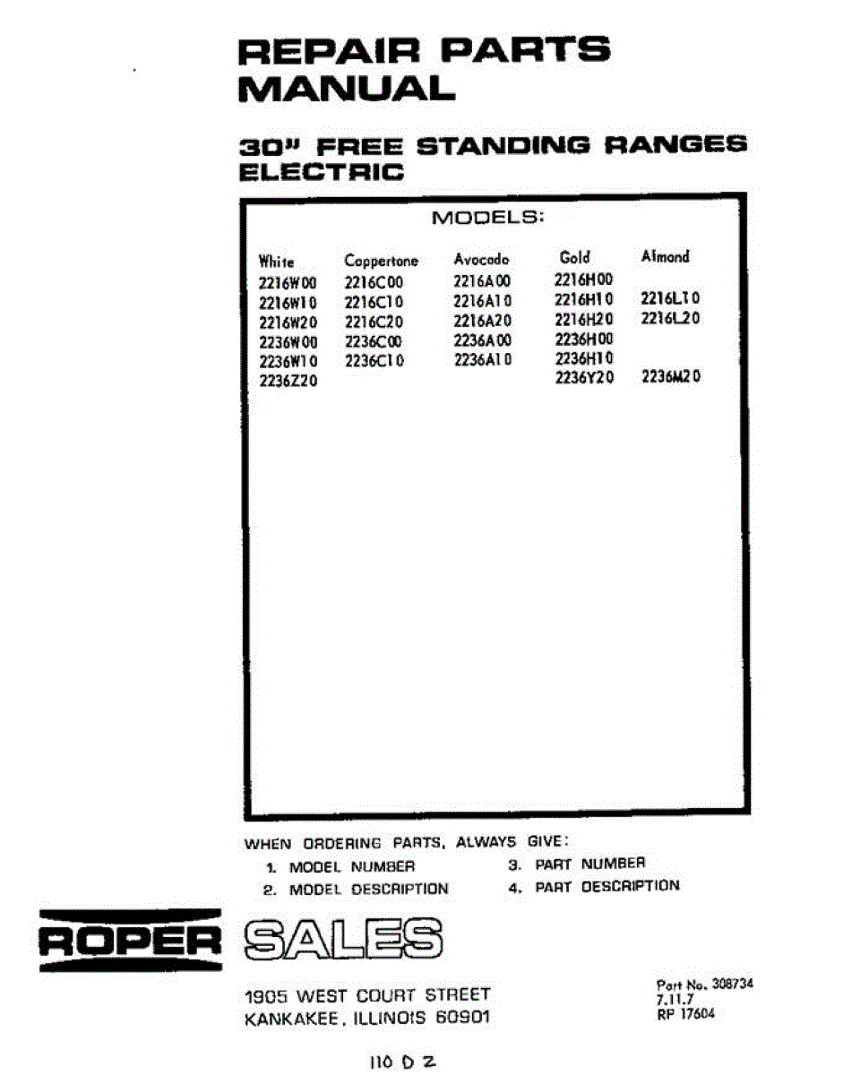 Roper Range Parts