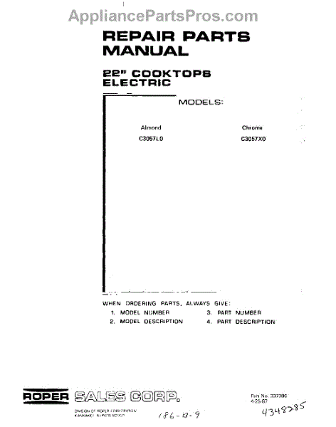 Parts for Roper C3057X0: 01 - Cover Parts