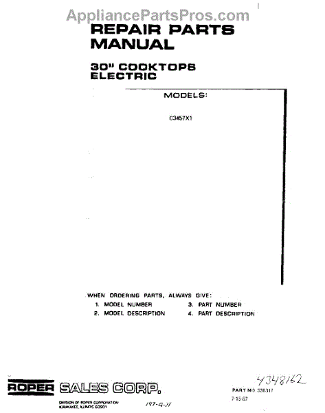 Parts for Roper C3457X1: 01 - Cover Parts