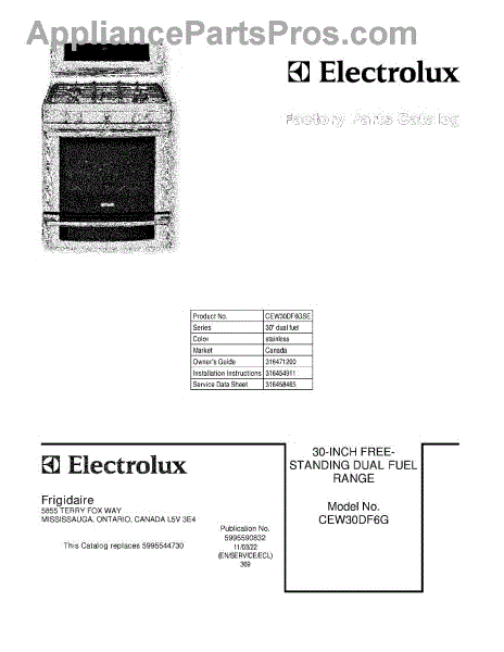 Parts for Electrolux CEW30DF6GSE: 01 - Cover Parts