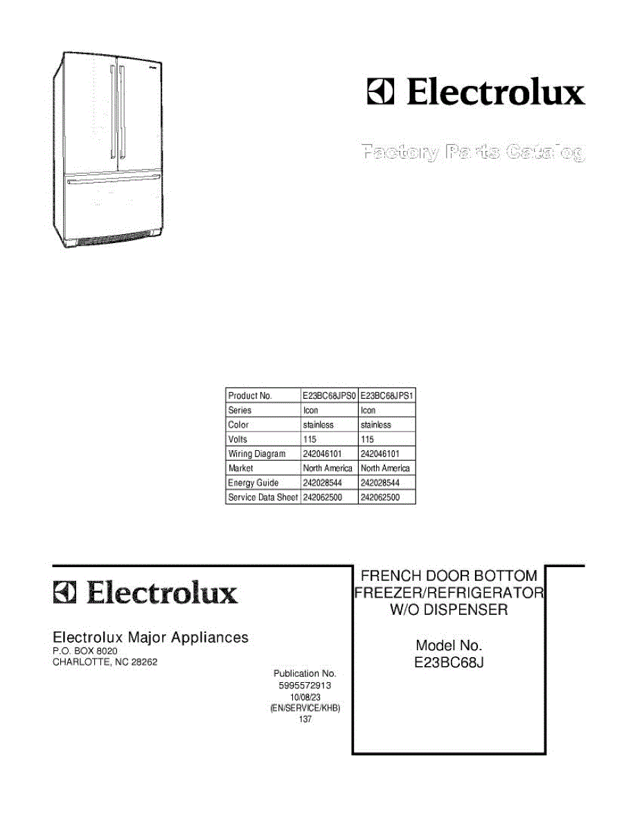 Parts for Electrolux E23BC68JPS0: 01 - Cover Parts