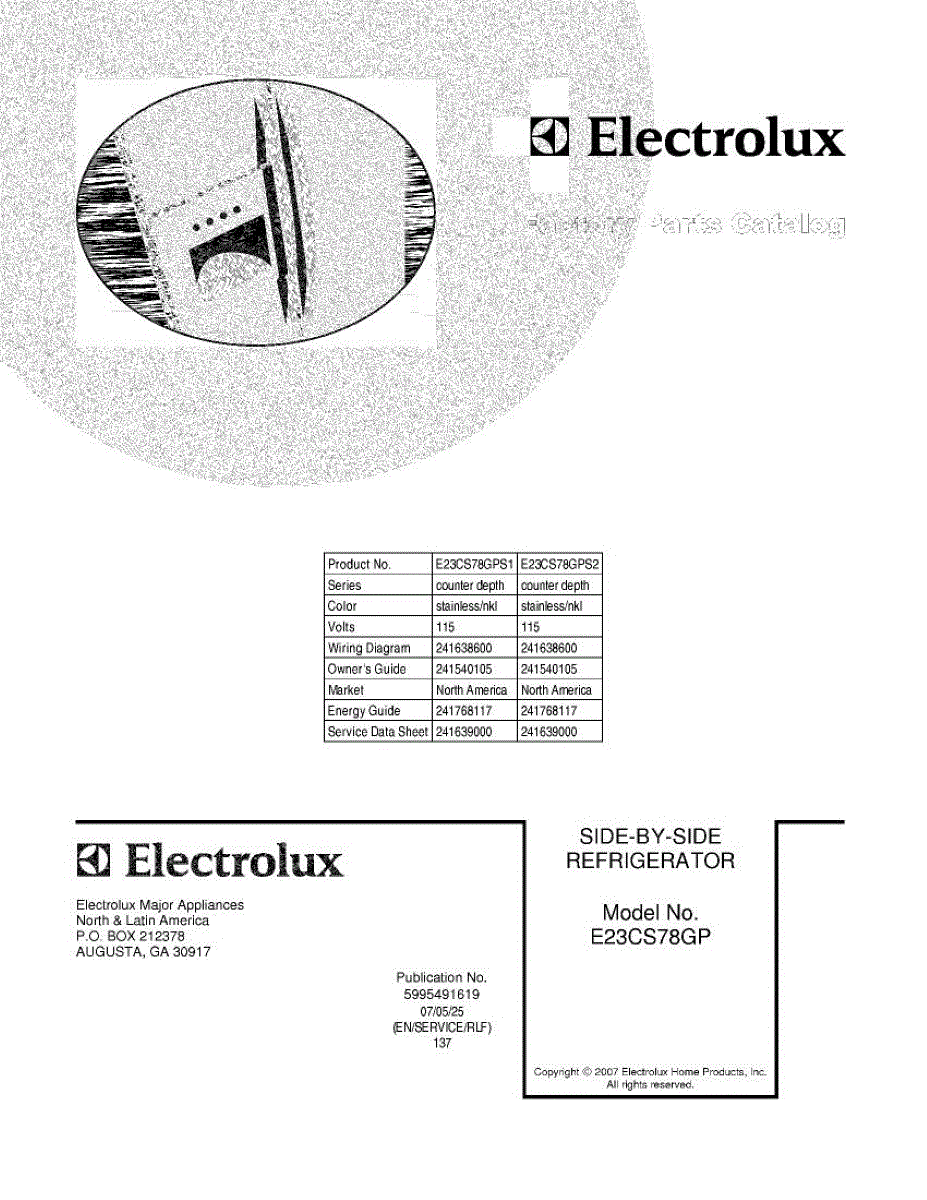 Parts for Electrolux E23CS78GPS2: 01 - Cover Parts