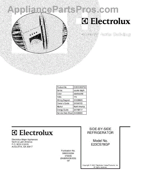 Parts for Electrolux E23CS78GPS3: 01 - Cover Parts