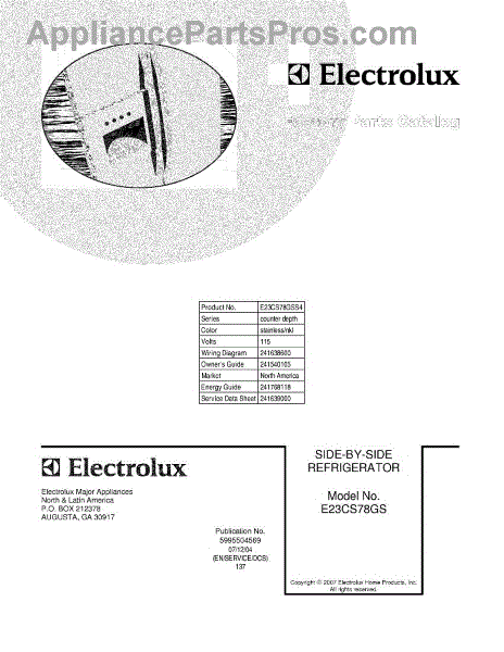 Parts for Electrolux E23CS78GSS4: 01 - Cover Parts