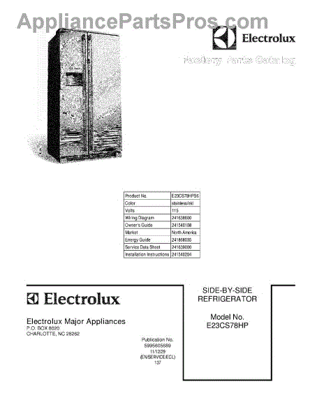 Parts for Electrolux E23CS78HPS6: 01 - Cover Parts