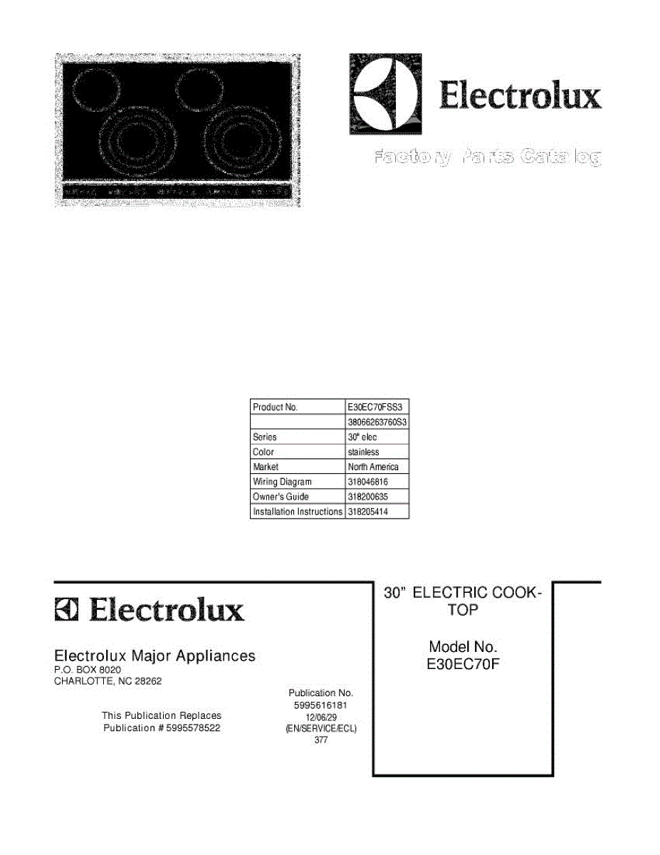 Electrolux Cooktop Parts