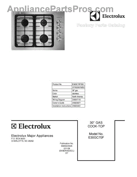 Parts for Electrolux E30GC70FSS2: 01 - Cover Parts