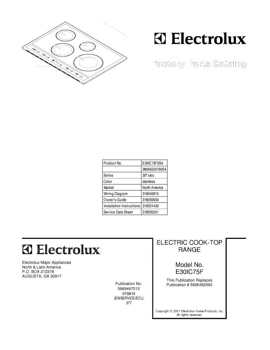 Electrolux Cooktop Parts