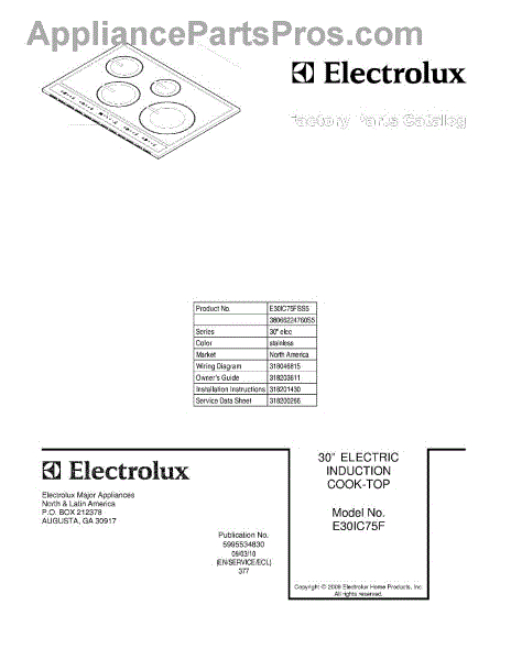 Electrolux Cooktop Parts
