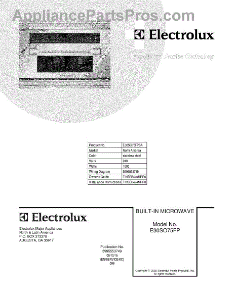 Parts for Electrolux E30SO75FPSA: 01 - Cover Parts