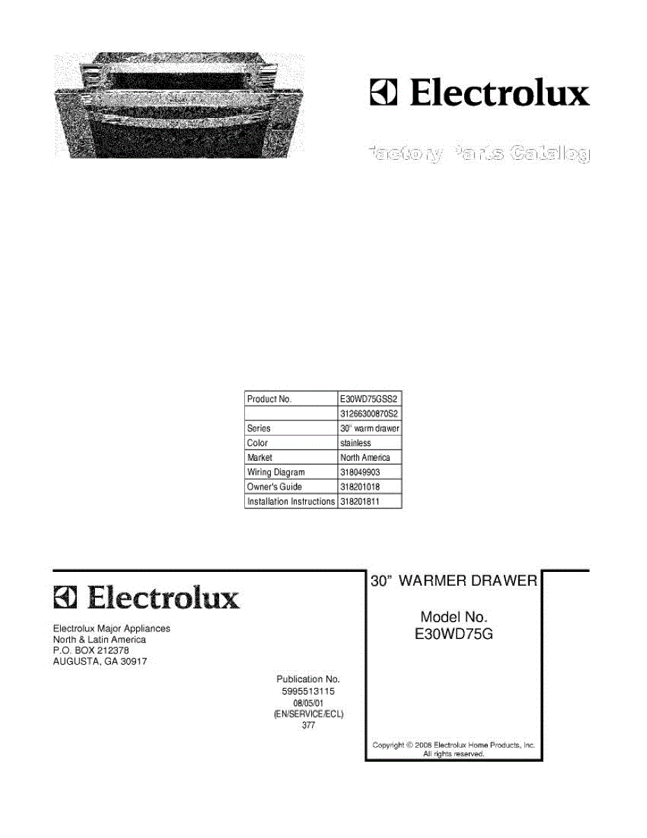 Parts for Electrolux E30WD75GSS2: 01 - Cover Parts