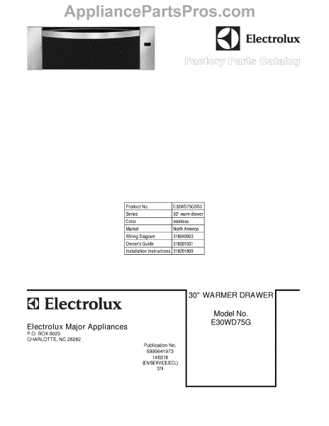 Electrolux Warming Drawer Parts