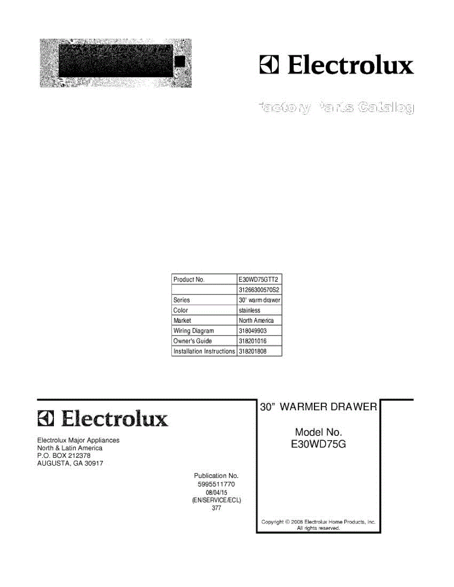 Electrolux Warming Drawer Parts