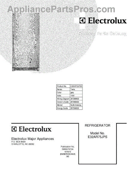 Parts for Electrolux E32AR75JPS0: 01 - Cover Parts