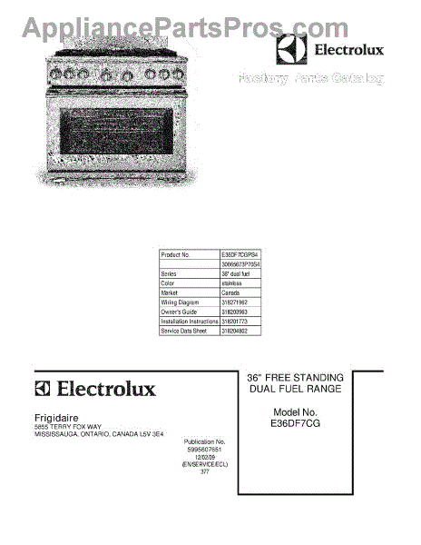 Electrolux Range Parts