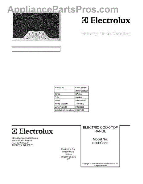 Electrolux Cooktop Parts