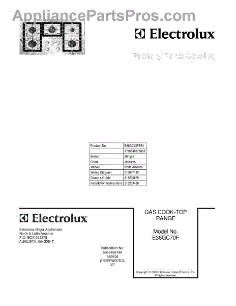 Electrolux Cooktop Parts