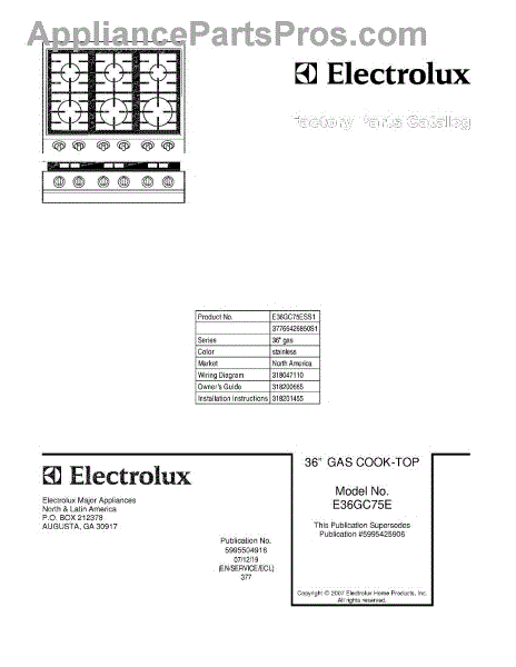 Parts for Electrolux E36GC75ESS1: 01 - Cover Parts