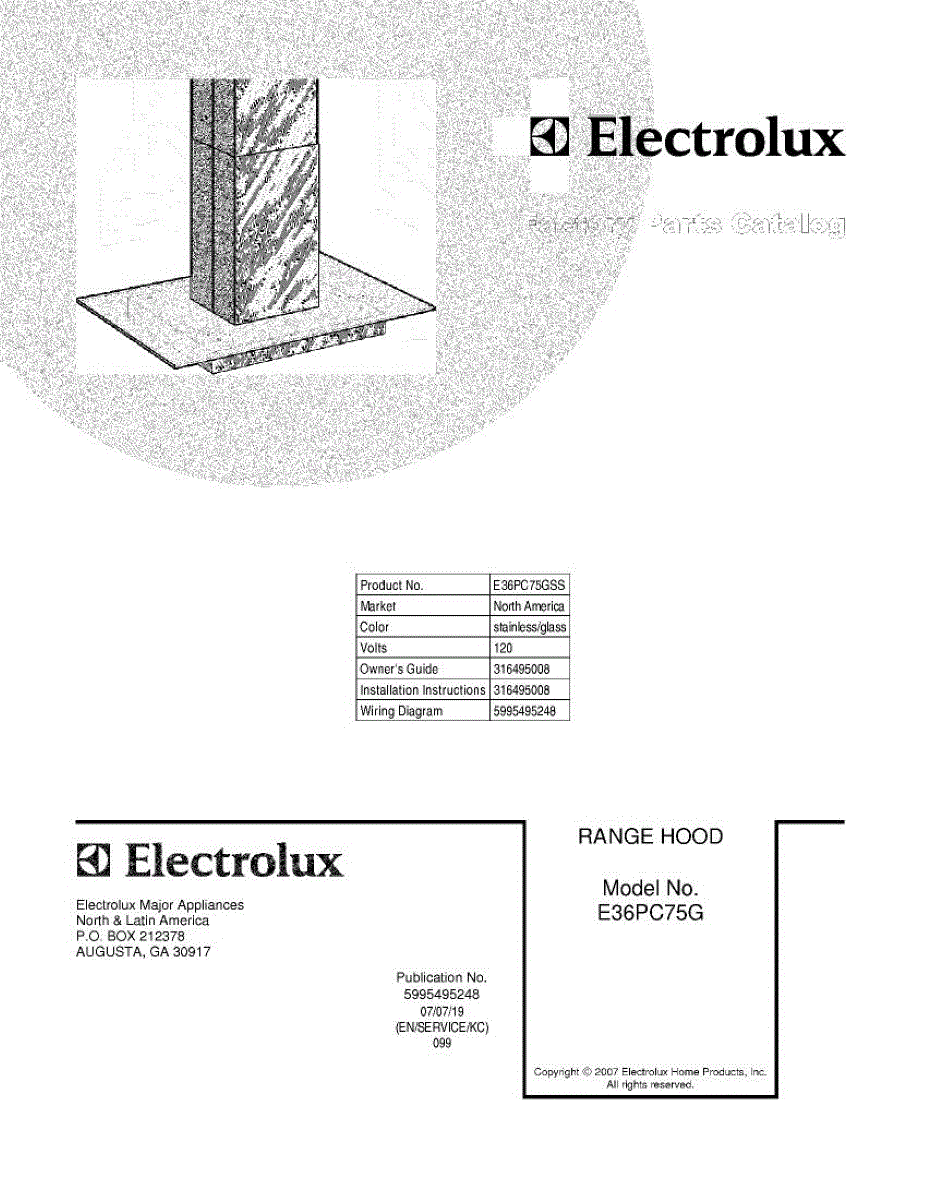 Parts for Electrolux E36PC75GSS: 01 - Cover Parts